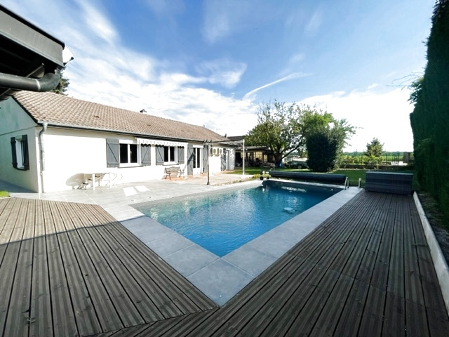 Située à Saint-Symphorien sur Saône, à 5 minutes de Saint-Jean de Losne, proche de toutes les commodités mais au calme absolu, venez visiter cette maison individuelle de 123 m2, au fond d’une impasse, sans vis-à-vis, disposant d’une piscine enterrée de 8X4 de 3 ans, sur un terrain clos et arboré de 790 m2. Vous disposerez : d’une entrée avec placard, d’une belle pièce de vie spacieuse et très lumineuse d’environ 50 m2 avec une grande cuisine équipée ouverte particulièrement fonctionnelle, le tout bénéficiant d’un accès direct à la terrasse et à la piscine exposées plein sud, de 3 chambres, d’une buanderie, d’un cellier, de WC indépendants, et d’une salle de bains avec fenêtre. De nombreux atouts pour cette maison de plain-pied : un mode de chauffage confortable via un poêle à bois récent (5 ans), un cumul de 200 litres neuf ainsi qu’un adoucisseur, des volets roulants électriques avec commande centralisée. Le tout en très bon état. Vous pourrez poser vos valises et profiter de la piscine ainsi que d’un cadre de vie calme et verdoyant sans vis-à-vis! et à 5 minutes de toutes les commodités. A voir sans tarder.